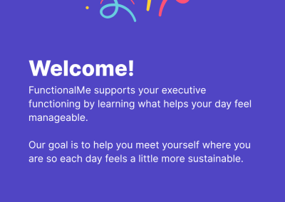 The primary goal of FunctionalMe is to help people improve self-regulation, self-awareness, and the ability to accurately predict success. When people can see their own patterns clearly, they make better choices about rest, effort, and care. I want users to feel more confident and less ashamed. Over time, the hope is that FunctionalMe will support reduced symptoms, stronger self-care habits, and improved executive functioning.