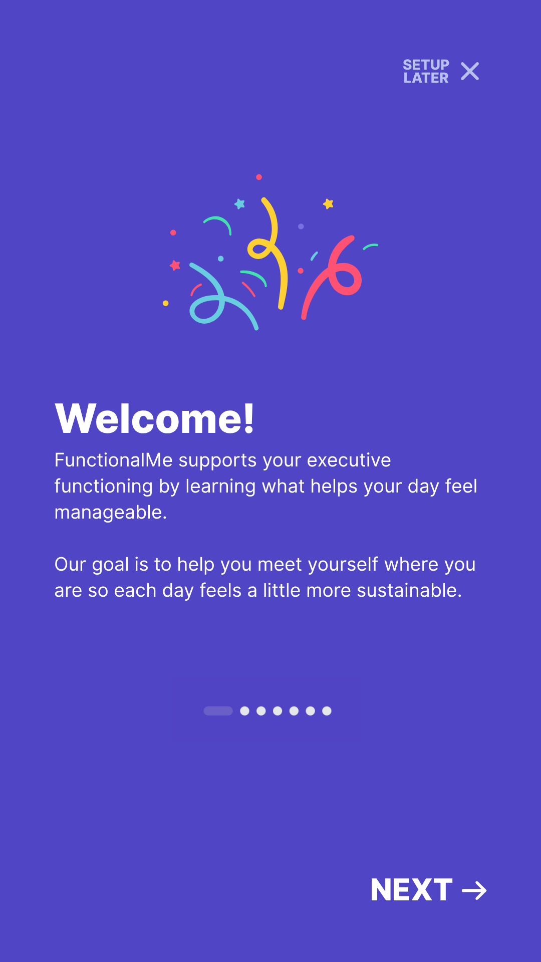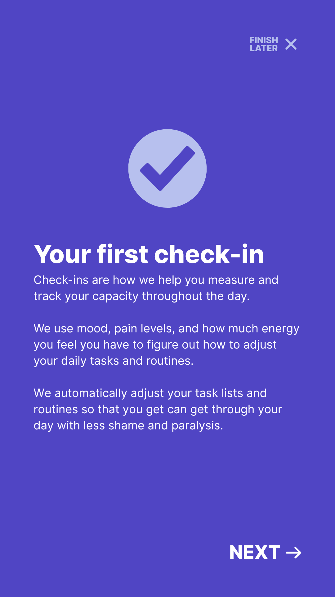 FunctionalMe helps users measure and adapt their capacity instead of forcing productivity. Every feature is designed to support awareness, reduce shame, and build self-compassion.