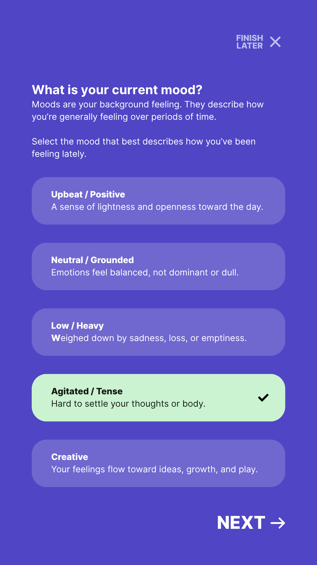 Most apps on the market at the time focused on tracking emotions, improving productivity, or setting and meeting goals. None of that is bad, but none of it felt complete. They weren’t holistic, and they didn’t account for persistent mood states. That was the frustrating part. They treated emotions as the same as mood, when anyone who has lived with depression or trauma knows that’s not true.